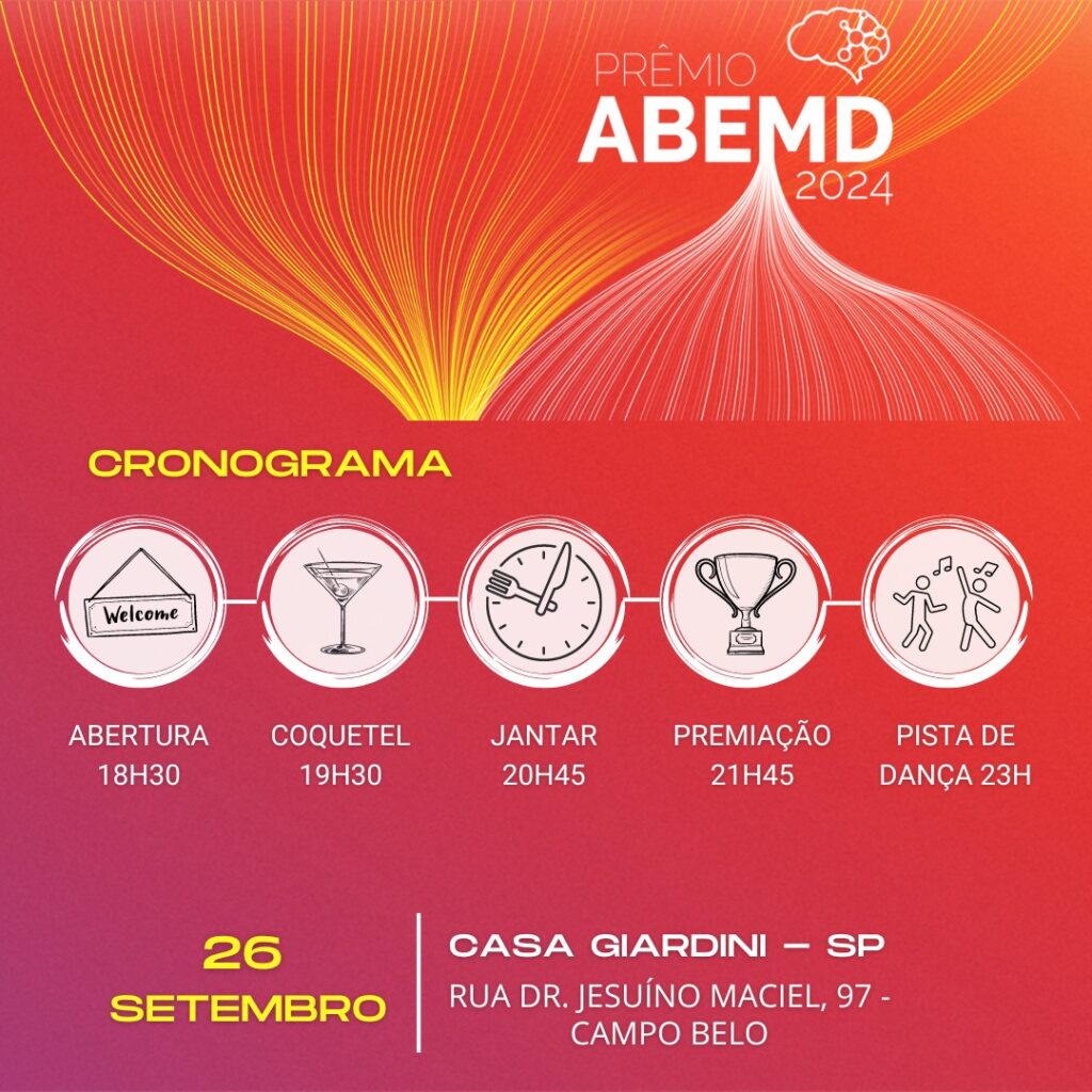 Confira o cronograma da Festa de entrega do Prêmio ABEMD Edição 2024, Comemorando os 30 Anos do Prêmio!